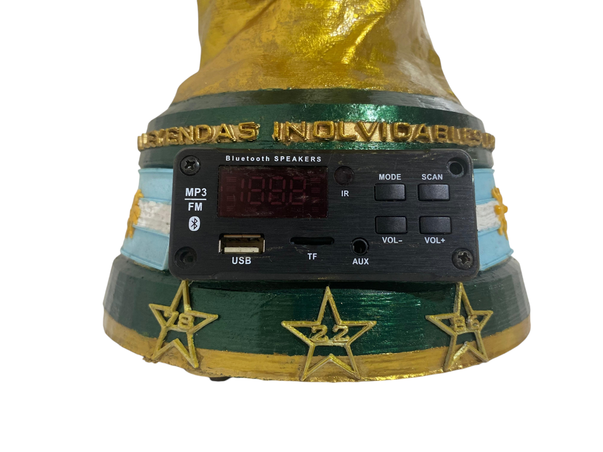 ¡El Mundial lo vivís en tu casa, en el trabajo, dónde más te guste, Argentina es toda pasión! No te pierdas la Única copa del Mundo, con Radio Fm – Am. Bluetooth, Pendrive, Luces y movimiento. ¡Viví tu pasión con la Copa Leyenda!